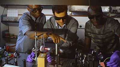 在圣地亚哥加州大学的Boubacar Kanté和他的同事们,创建了第一台“拓扑激光器”。该装置包含围绕任何形状腔体的光之蛇行线,以至于光不被散射,非常类似于在拓扑绝缘体的表面上电子的运动。激光器在电信波长下工作,并且可能导致更好的光子线路,甚至保护量子信息不受散射。