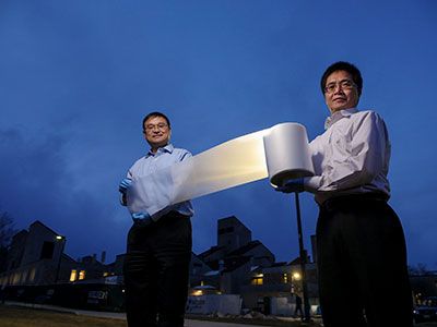 获奖者:科罗拉多博尔德大学的Ronggui Yang 和 Xiaobo Yin,以及同事们。他们创造了一种新的超构材料薄膜,这种薄膜可以提供冷却功能,而无需电功率输入。这种材料由玻璃微球、聚合物和银制成,材料采用被动辐射冷却,将薄膜覆盖于物体使其散热。物体以红外辐射的形式发射能量,该能量可以穿透大气层(碰巧辐射波长与大气窗口匹配),最终进入太空。这种超构薄膜还反射阳光,这意味着它白天和黑夜都在工作。但或许最重要的是,它能够以工业规模廉价生产。