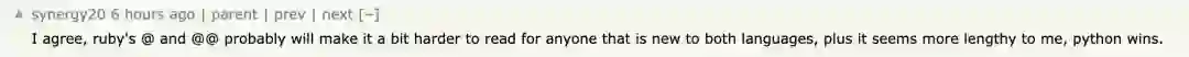 这不,关于编程语言Python和Ruby谁更可读,网友都吵翻了。