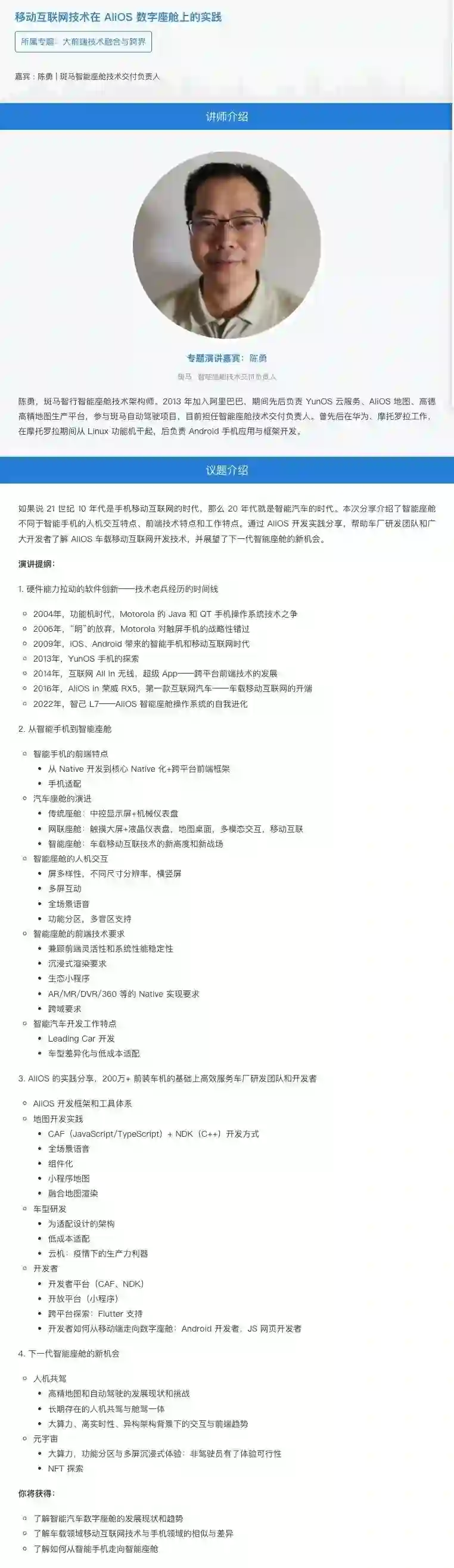 推荐议题:移动互联网技术在 AliOS 数字座舱上的实践