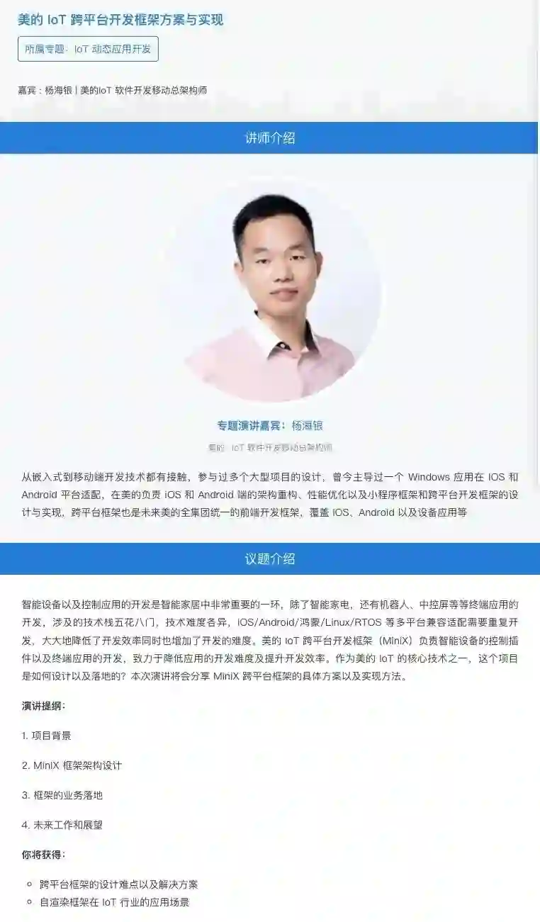 推荐议题:美的 IoT 跨平台开发框架方案与实现