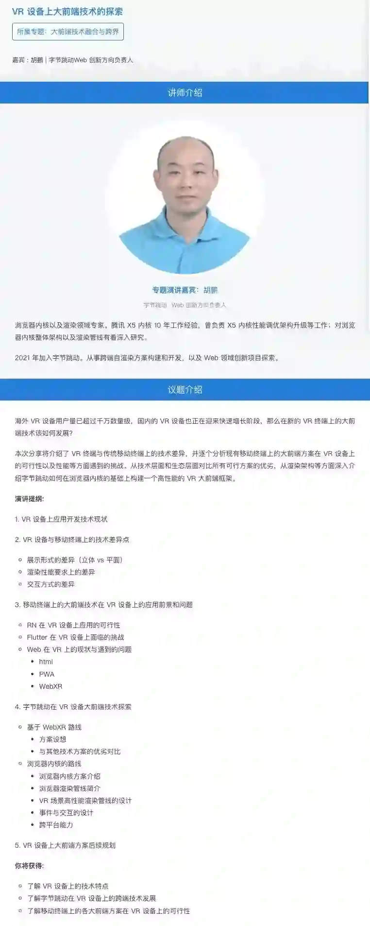 “你的下一步手机,何必是手机?”那它会是智能眼镜吗?会是 VR 设备吗?经过了几年的沉淀,VR 产业因为元宇宙的助推在今年迎来了一场小小的爆发。在这样的新终端上,大前端技术走向如何?稳定性和用户体验如何优化?这些都是让人兴奋的新挑战。