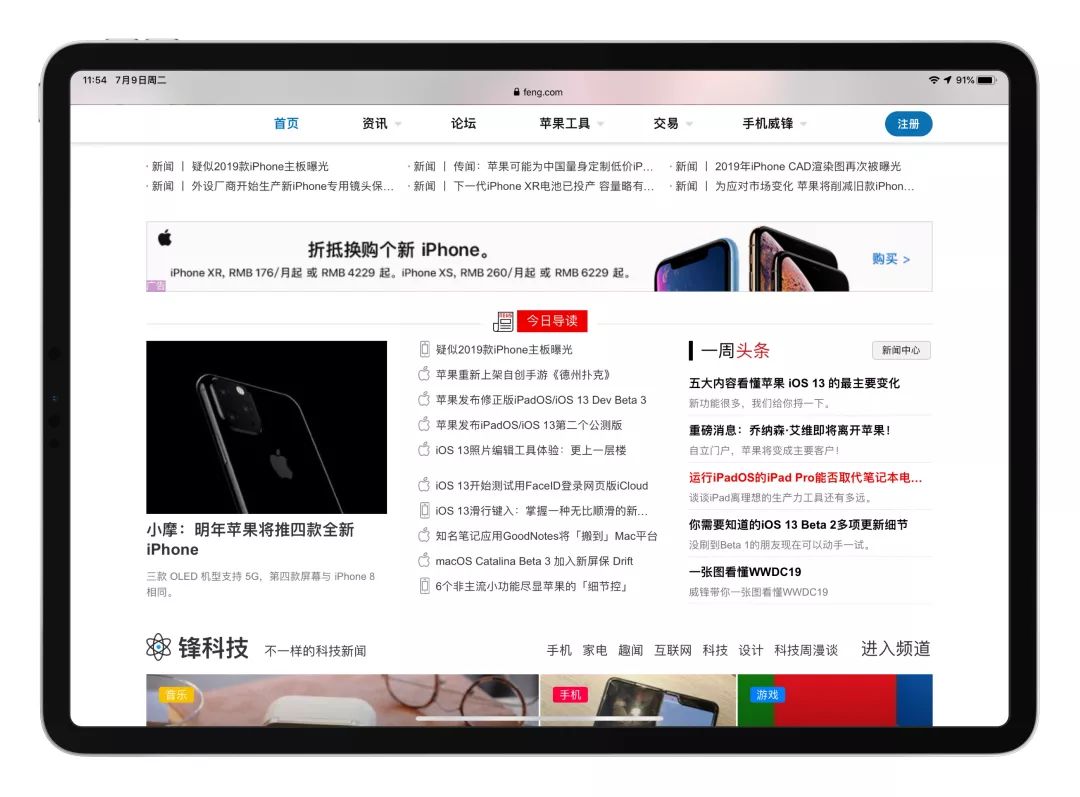 但 Safari for iPadOS 默认打开桌面布局却不是简单地将「打开桌面版」这一步骤省去,而且从底层代码和视图模式对浏览器进行改进,所以你可以从下面两张对比图看出差别两者的区别:图一使用 Chrome 的「请求桌面模式」打开,图二在 Safari 中打开。Safari 显然在网页布局的美观度上更胜一筹。
