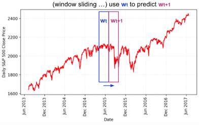 第0、1、2天的股票和第3、4、5天的股票为训练集,第6、7、8天的股票是目标列,就构成了监督学习数据。以此类推,将所有数据构成训练数据集。