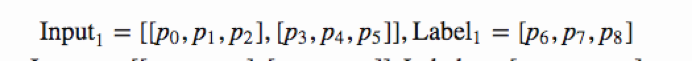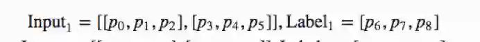 这里做了一次归一化,因为股票在50年的市值是每股19块左右,到了2017年涨到了2600多块,分布很不均匀,于是通过把每天股票close值除以历史股票最高值,将所有数据的定义域限定在0到1之间。接着构建预测集,涉及到两个参数input_size和num_steps,当input_size=3 and num_steps=2时会构建以下数据集。
