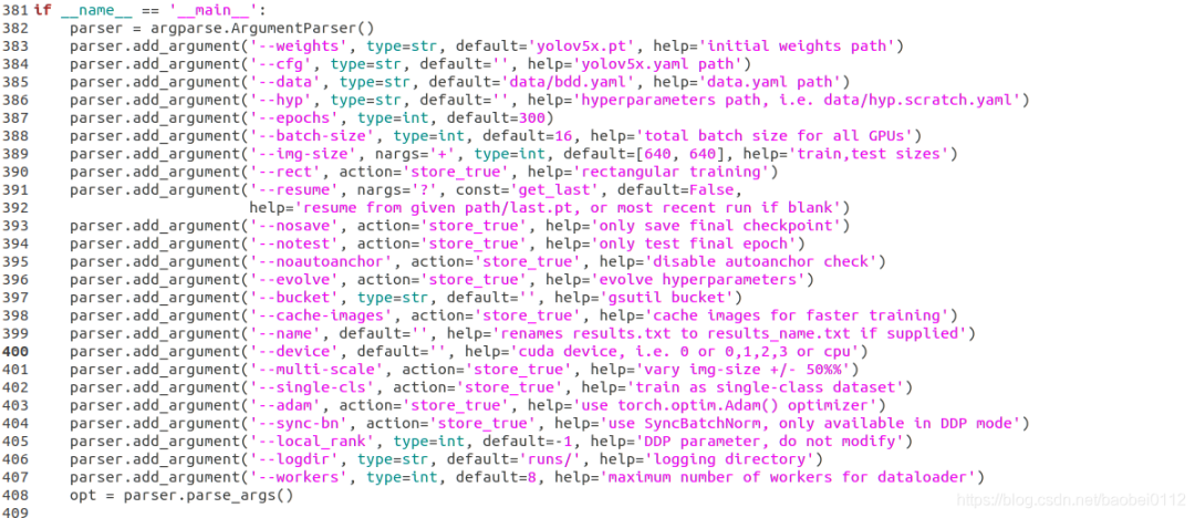 (4)--batch-size 和 --img-size 可以再这里修改也可以默认不动,再训练命令行里设定
