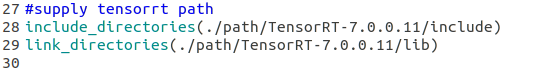 如果tensorrt是通过tar包解压安装的,还需要在CMakeList.txt中对tensorrt路径进行指定,不然会报错找不到nvinfer