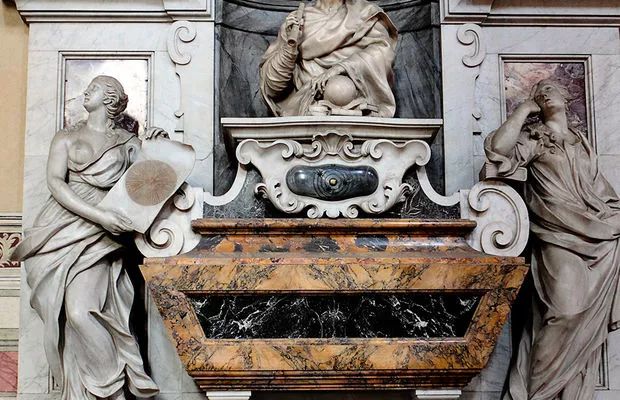 感谢美第奇家族对伽利略的执着爱护,原本要被草草下葬的伽利略,最后被安葬在了圣十字教堂里面。
