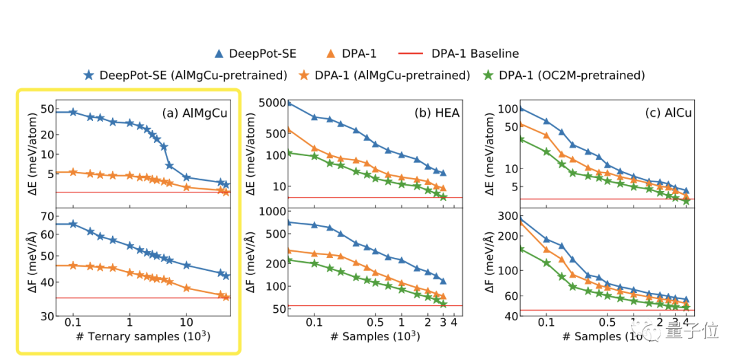 在AlMgCu合金数据集测试中,就将一元、二元子集上进行预训练,然后在三元子集上测试。