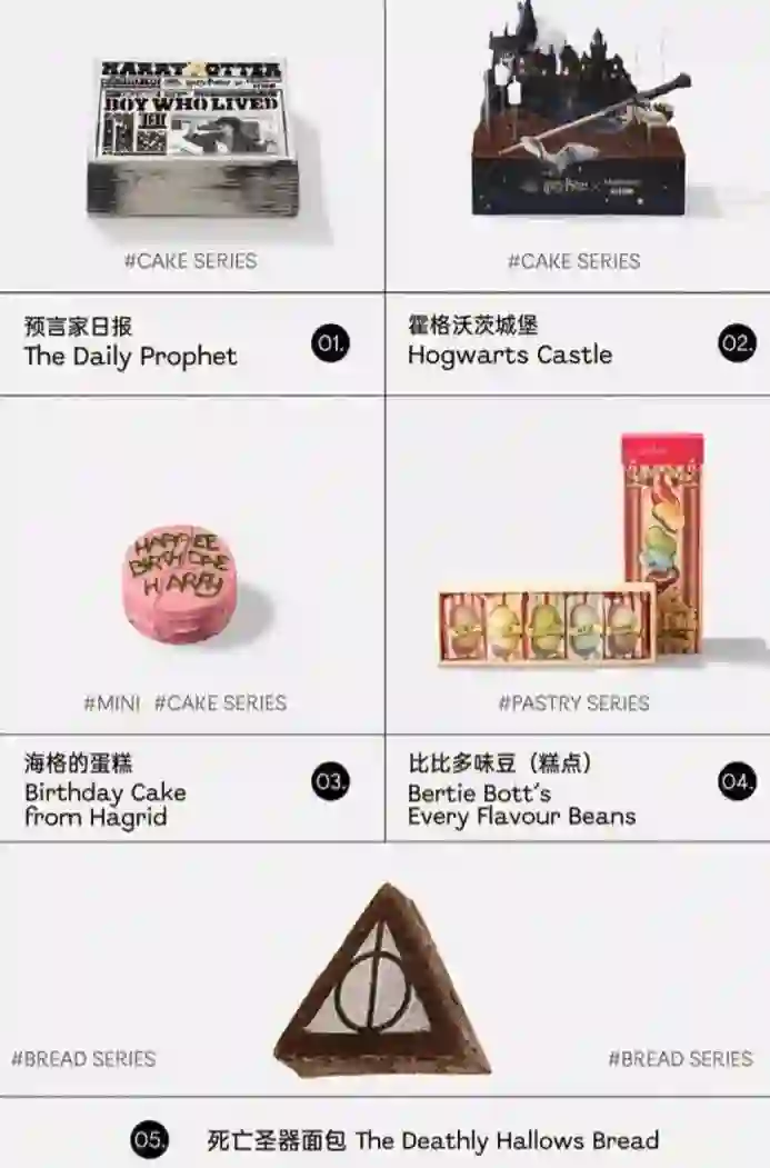 醒醒!好利来又放大招啦,联名哈利波特推出了海格的蛋糕、比比多味豆、死亡圣器面包等等,真是直戳哈迷的心窝子,七天假期够大家都尝一遍了吧。