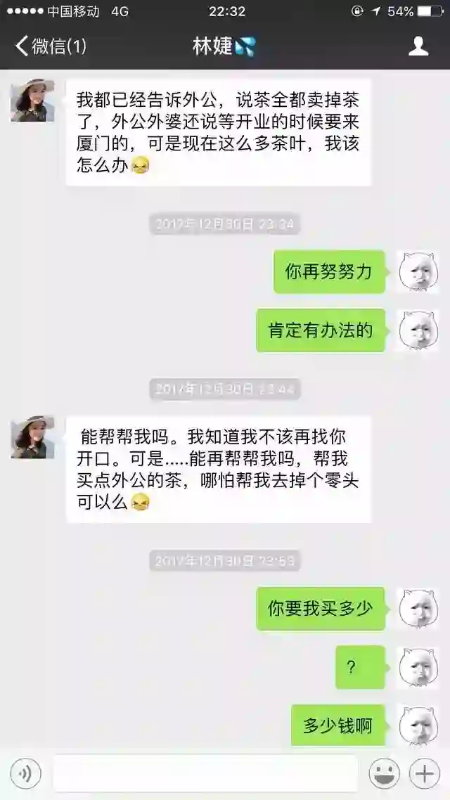 “外公那儿现在还有很多茶叶,我真的已经没有办法了,你能再帮帮我吗?”黄先生再次转了1600元。