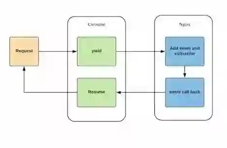 相比起nginx/luajitvm, CoSocket(协程socket)是更和实际应用相关的部分。OpenResty 中的 cosocket通过coroutine(协程)支持以及上面提到的非阻塞事件回调机制两部分结合在一起,最终保证了openresty能支持高并发网络操作的基础。用户的luascript每发起一个io request,都会伴随coroutine的 yield 以及 resume。请求的 Lua 脚本实际上都运行在独立的协程之上,当遇见网络事件时(比如ngx.socket.tcp),暂停自己,把网络事件注册到 Nginx 监听列表中,把CPU让给其它协程继续工作。当有 Nginx 注册网络事件达到触发条件时,唤醒对应的协程继续处理。创建一个协程的体量非常轻,占用内存开销极少,并且没有线程上下文的切换。