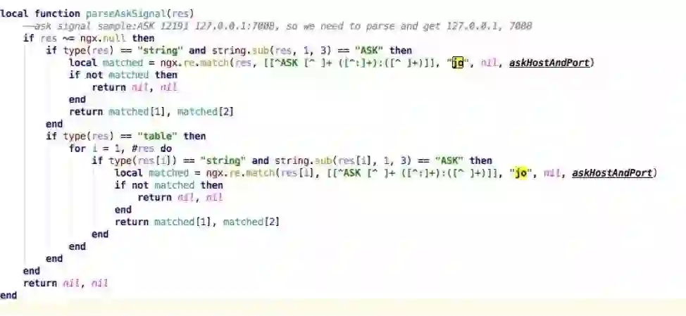 在开发过程中,非常感谢openresty group的其他开发者提的意见。比如需要解析redis cluster的ASK redirection:ASK 12191 127.0.0.1:7008, 我们需要得到127.0.0.1和7008, 如果按照lua正常的字符串split/sub还是比较慢的。
