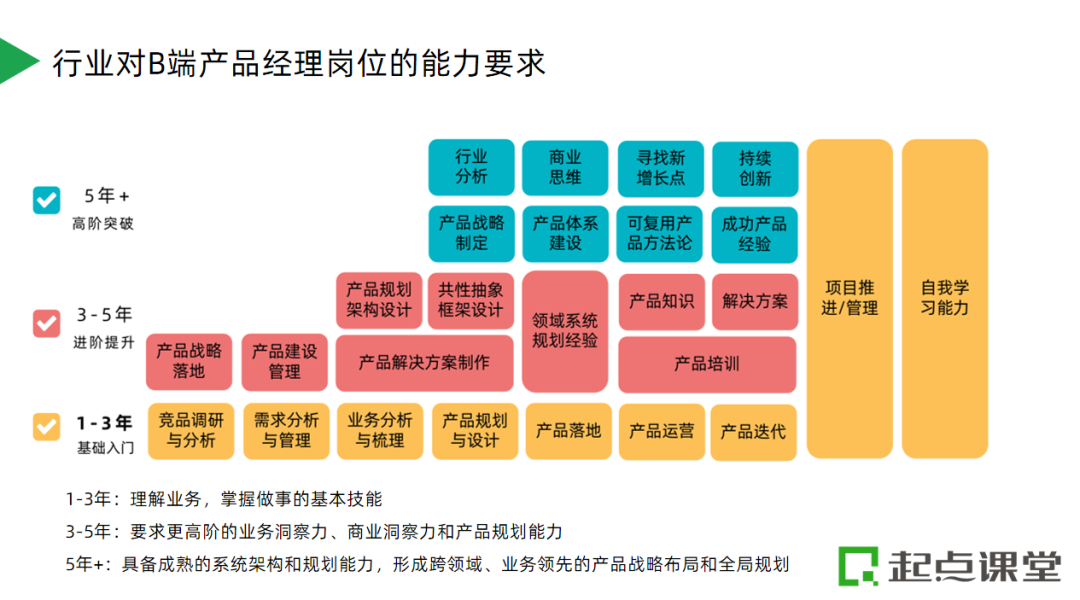 因为对于B端产品经理来说,不同的发展阶段所对应的能力是不同的,如果对自己还没有一个清晰的认知,并且停滞不前,那么终将会跟别人拉开差距,被时代所淘汰。