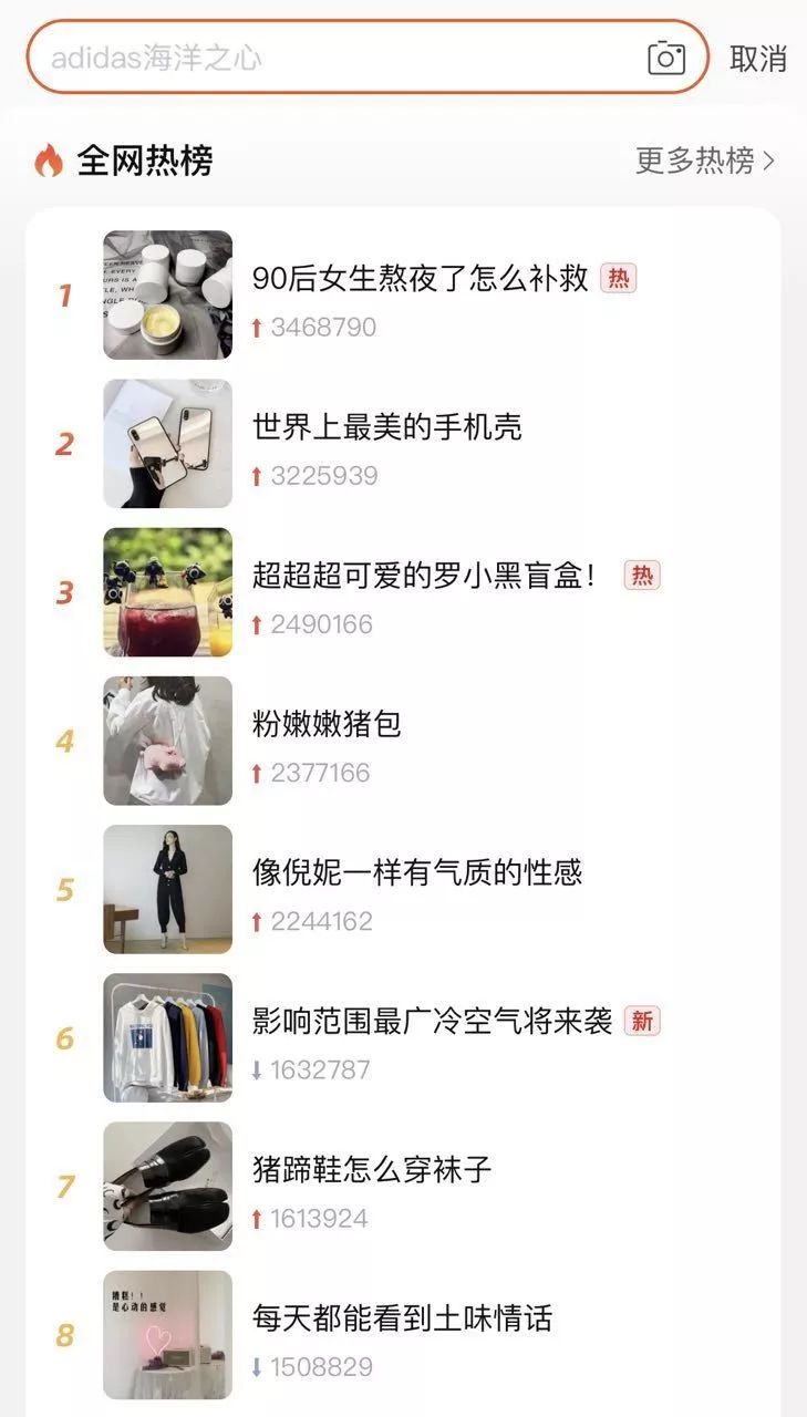 根据淘宝页面显示,在「全网热榜」中,根据消费者搜索关键字就可以看到相关商品推荐,同时榜单也会根据热度进行实时更新。(来源:腾讯科技)