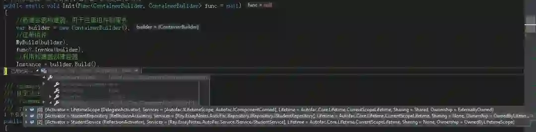 AutoFac容器在解析StudentService的时候,会调用StudentService的构造函数进行实例化。