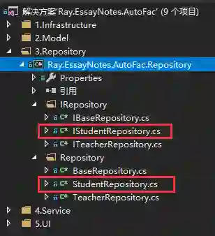 还拿上面的例子说明,现在我添加一个DAL的接口层,IStudentRepository,抽象出所需方法: