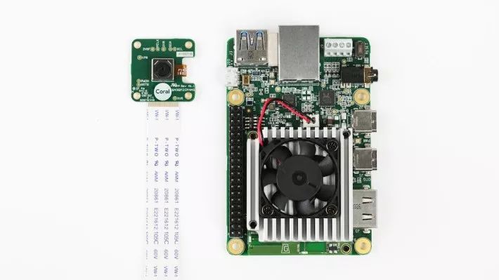 镜头模块(左)可以配合 Coral Dev Board 进行图像识别
