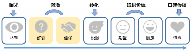 再来看【激活】环节,对应用户消费体验流程的【好奇】【信任】节点。