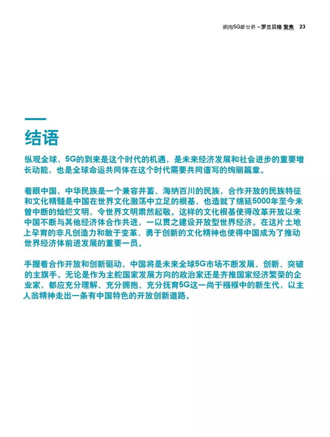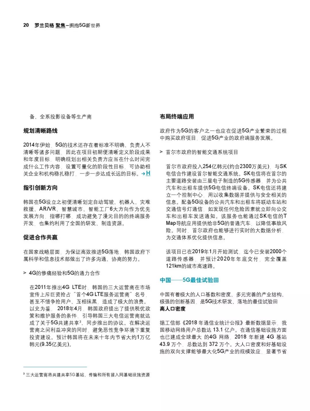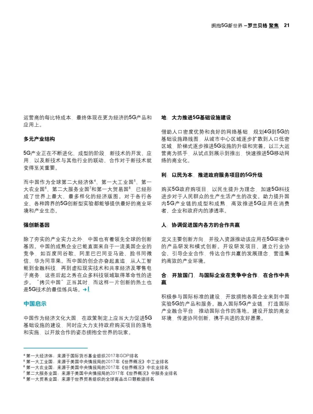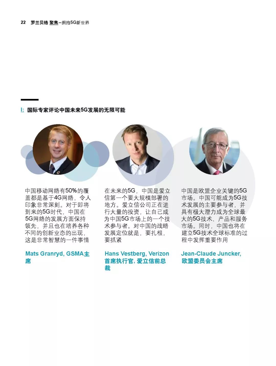 着眼中国,我国拥有极大的人口基数和密度、多元完善的产业结构、极强的创新基因,是5G技术研发、落地的最佳试验田。对于中国未来5G的发展蓝图和方向,罗兰贝格建议应遵从“地利人和”原则,在政策制定上应当大力促进5G基础设施的建设,同时大力支持政府购买项目的落地和实施,以开放合作的姿态拥抱全世界的玩家。