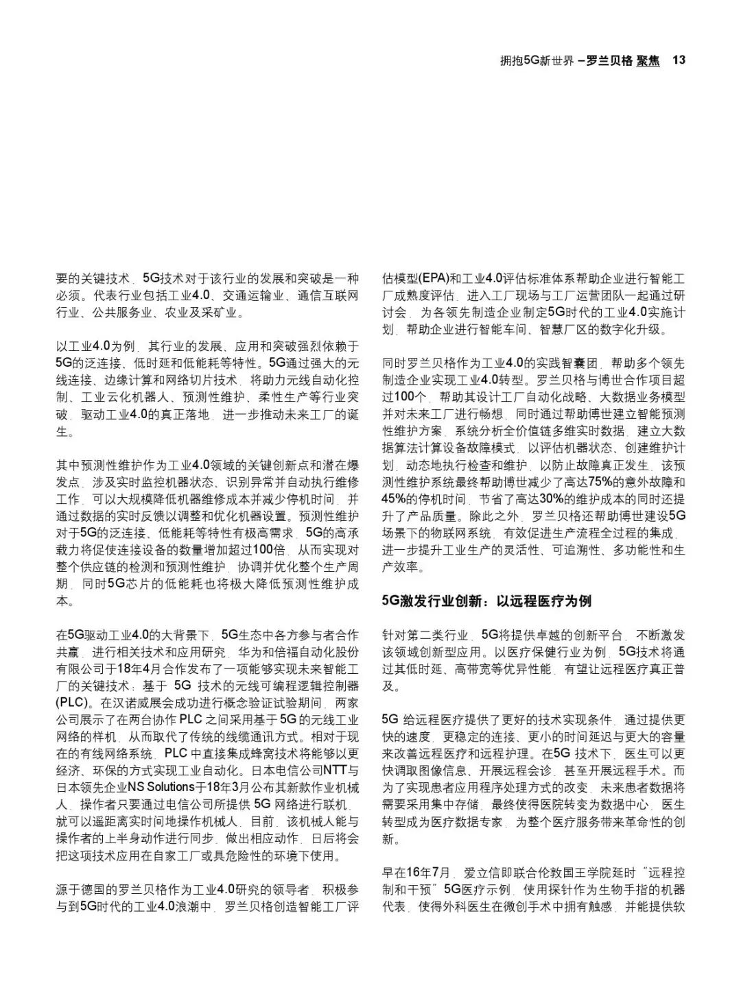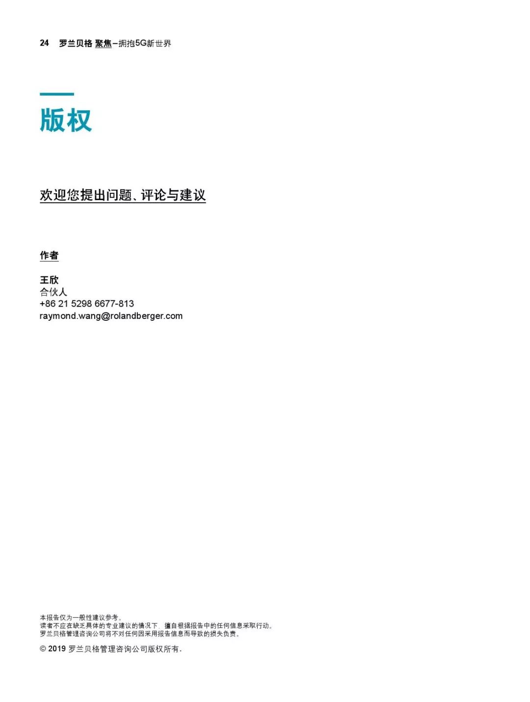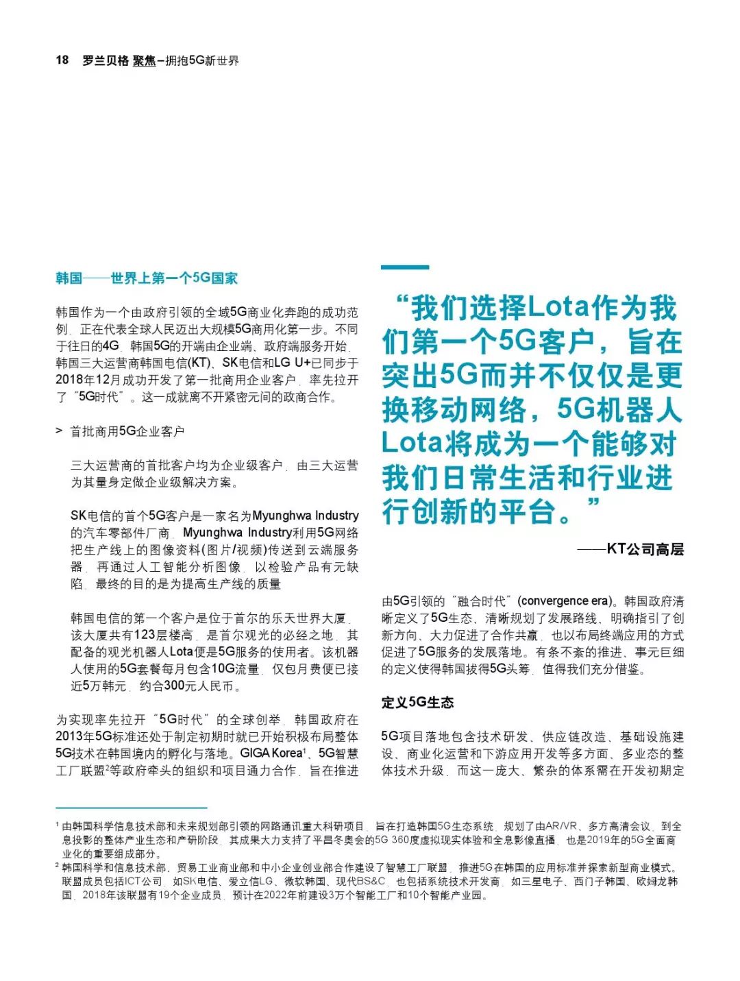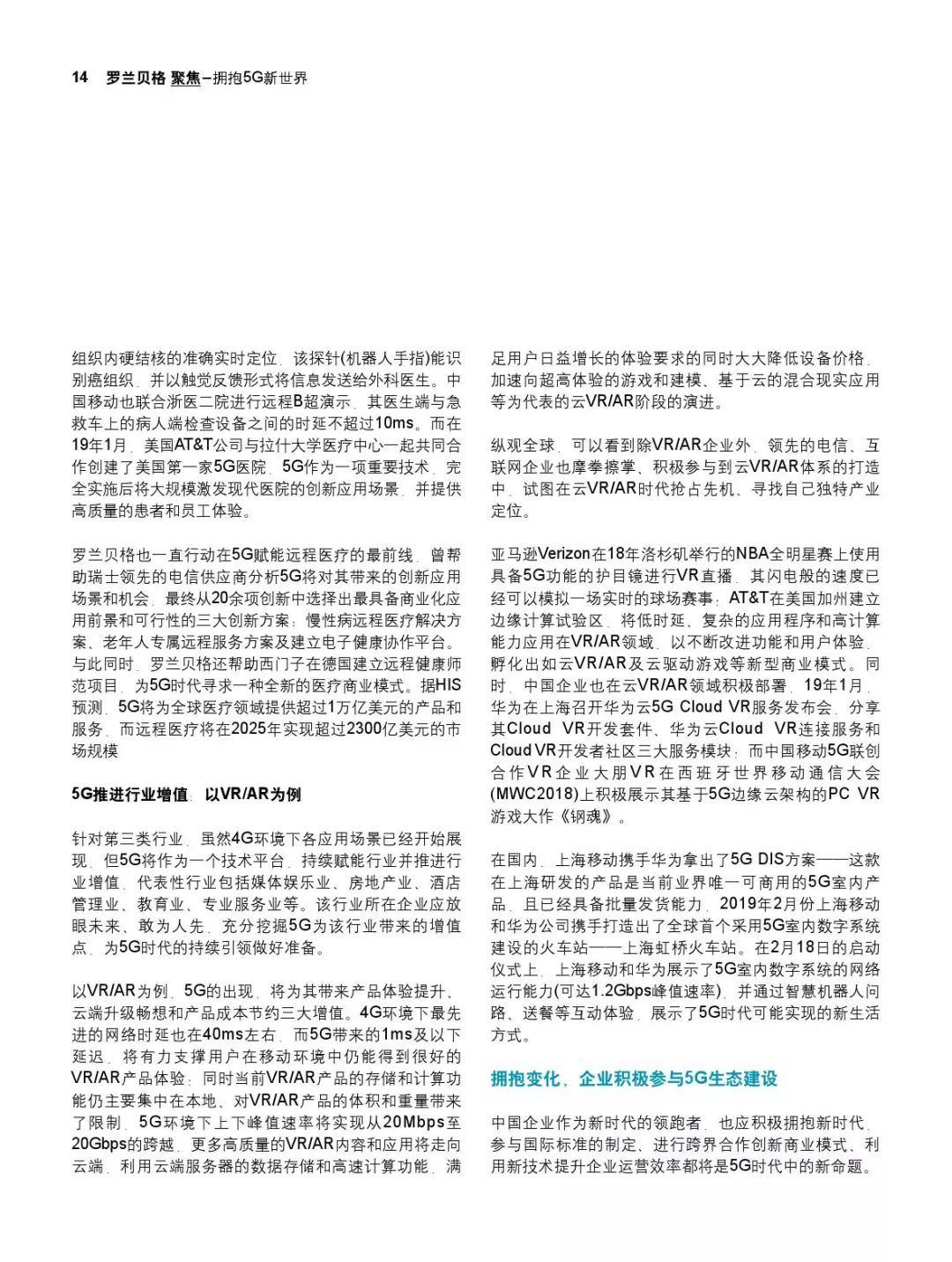 在报告中,我们聚焦“5G引领行业突破”的“工业4.0”,“5G激发行业创新”的“远程医疗”及“5G推进行业增值”的“VR/AR”三大应用领域,针对5G对该行业带来的改变、该领域企业的最新进展进行剖析,同时罗兰贝格也已经积极参与到各行各业中,帮助企业打造5G时代的业务战略,以更好地拥抱变化、为新时代到来做好充分准备。