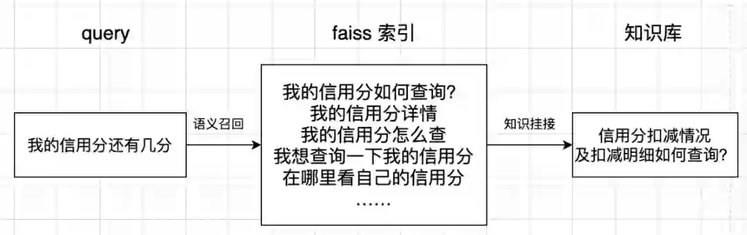 召回层:召回层是将候选答案从FAQ库中拿回,获得待排序的候选集。此处用了两种召回方式:检索召回和语义召回。检索召回会根据NLU层的意图识别与词法分析结果进行关键词和意图的加权,同时,n-gram的使用也一定程度上减弱了分词错误带来的负面影响。语义召回是将相似问构建成一个faiss索引,这些相似问已经由知识库运营人员总结成标准问,并和知识产生了挂接。query和相似问会被映射到同一个语义向量空间,通过KNN能快速拿到和query最相近的相似问,从而拿到最可能回答query的答案。下图直观展示了语义召回的过程: