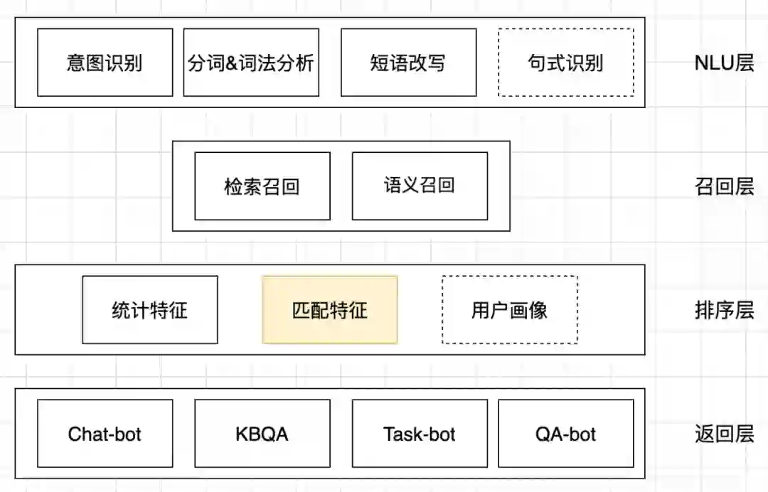 返回层:query经过上述处理之后会对处理结果进行返回。四种返回层场景展示,依次是Chat-bot,Task-Bot,KBQA和QA-Bot:
