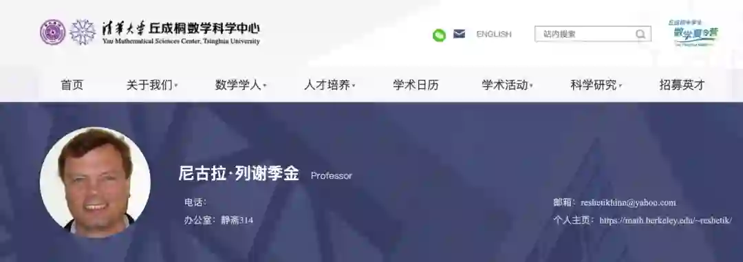 然而,Reshetikhin 加入清华一事,早已有消息。