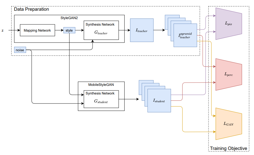 合成高保真图像,参数量、计算复杂度显著降低,压缩版 StyleGAN 或可在移动端部署。