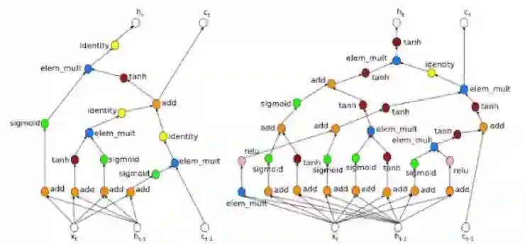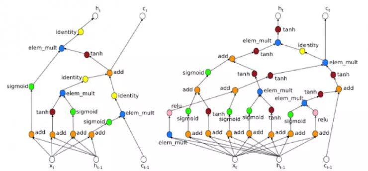 来自Le和Zoph的博客文章:左边更简单的架构是人类设计的,右边更复杂的架构是神经网络设计的。