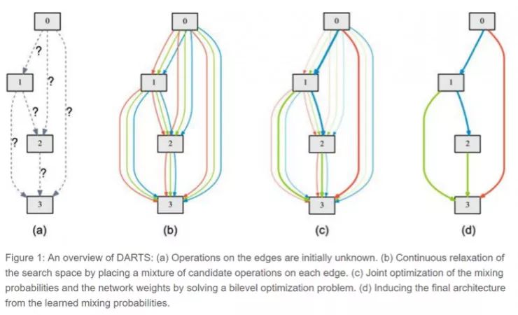 可微分网络结构搜索(DARTS,https://www.groundai.com/project/darts-differentiable-architecture-search/ )。这项研究是最近由卡内基梅隆大学和DeepMind的一个团队发布的,我对这个想法很感兴趣。 DARTS假定候选网络结构的空间是连续的,而不是离散的,这使得它能够使用基于梯度的方法。这比大多数神经架构搜索算法使用的黑箱搜索效率高得多。