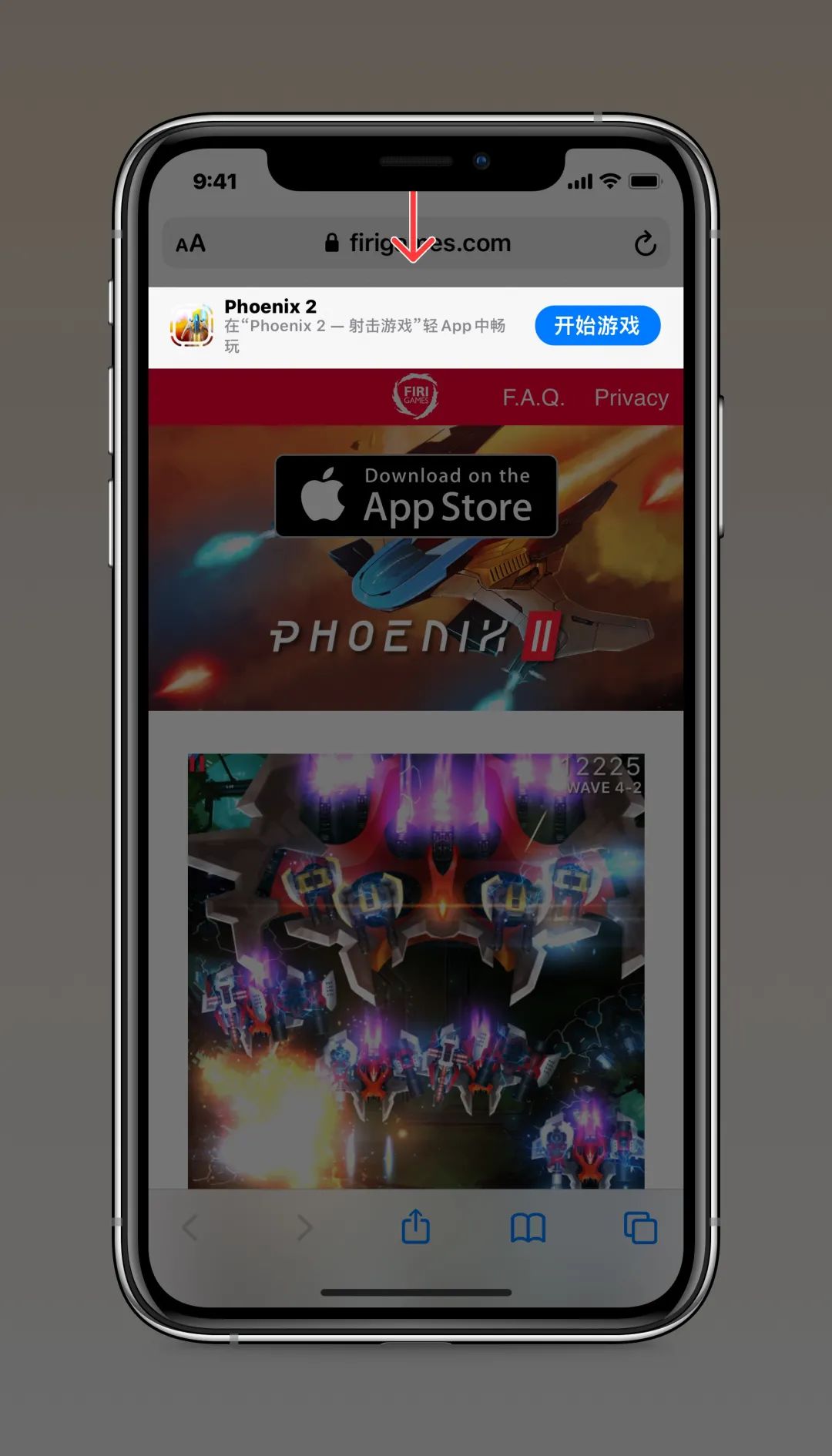 如果你通过 Safari 打开该网页后,顶部没有弹出横幅的话,原因可能是系统不支持(需 iOS / iPadOS 14 系统),或者 Safari 开启了无痕模式(非无痕模式下才支持),又或者是你已经安装了《Phoenix 2》这款游戏。