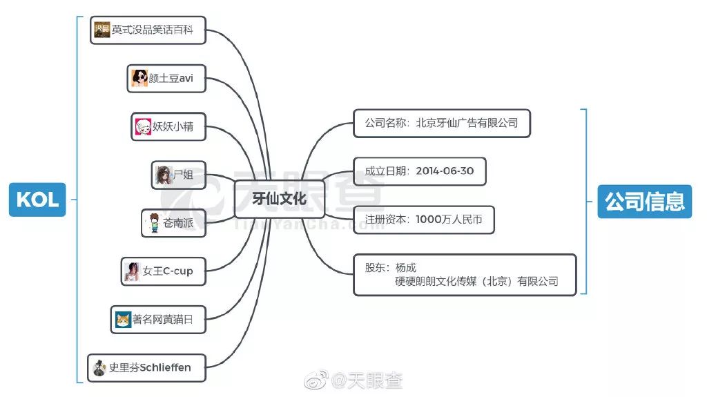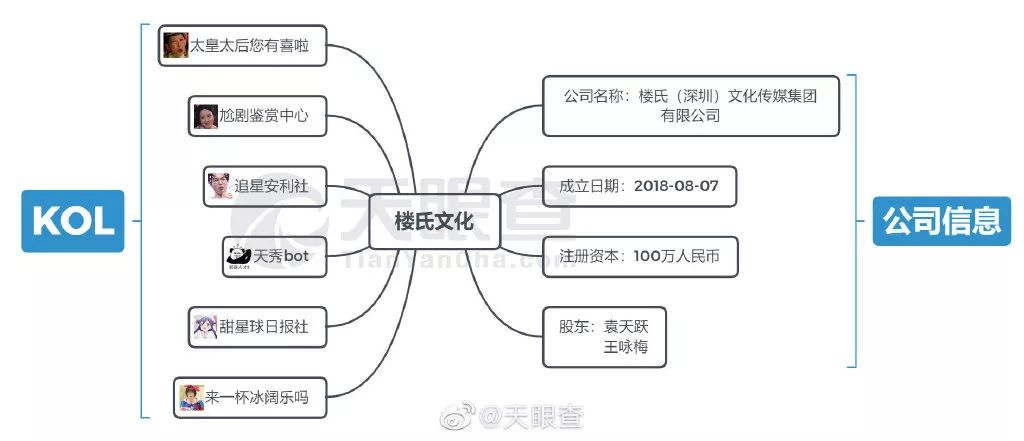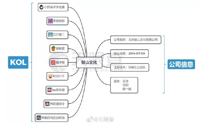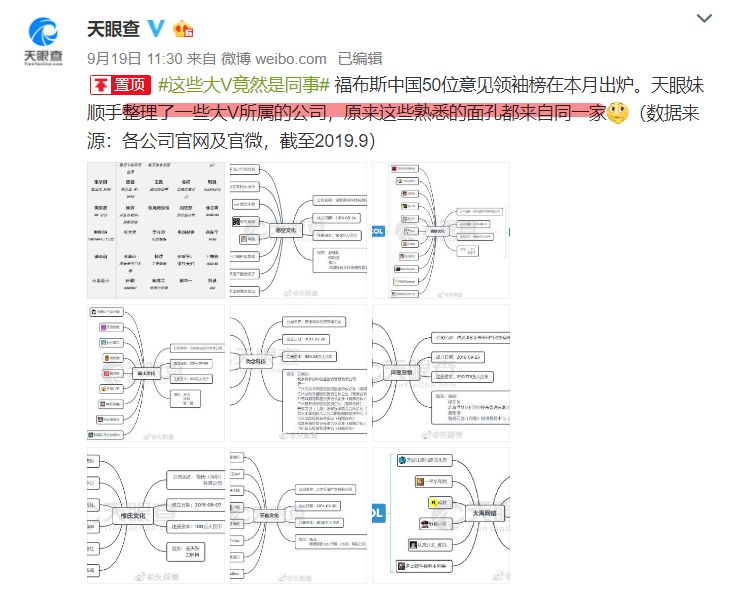 前阵子,天眼查还整了一份数据。平时大家刷微博会刷到的大 V ,很有可能是同一家公司的。。。