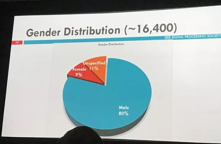 IEEE 信号处理学会目前有约 16400 名注册会员,其中 27% 来自亚洲,40% 来自美国,27% 来自欧洲、非洲和中东,3% 来自中美洲、南美洲,以及 3% 来自加拿大(整个 IEEE 的注册会员数目超过 40 万)。而 IEEE 信号处理学会会员的男女比例不出意外地在 8:1 左右(暂不考虑不清楚的)。组委会也因此组织了一个 Women in Signal Processing 午餐会,安排了主题为「如何成为 IEEE Fellow 以及更多」的圆桌讨论。