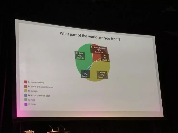 正会第一日早晨的开幕式上组委会主席们展现了他们的趣味,与卡尔加里副市长一同戴着牛仔帽出席并上台发言。IEEE Signal Processing Society 主席 Ali H.Sayed 也通过 ICASSP events 和在座听众进行了互动,现场通过手机投票方式统计出约有 38% 的参会者来自亚洲、17% 来自北美、38% 来自欧洲,以及有一半的人是第一次来到 ICASSP 大会现场。