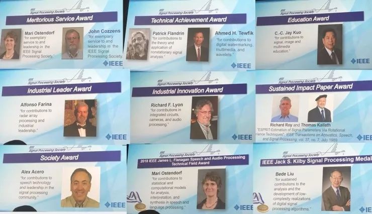 开幕式上也颁发了信号处理学会的卓越贡献奖、技术进步奖、教育奖、工业创新奖、工业领导奖、社会奖、持续影响论文奖等多个奖项。
