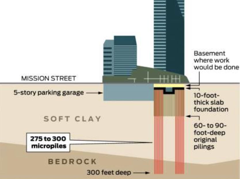 工程师们也在努力寻求修复大楼的方法。据旧金山纪事报报道,现在最完整的一个解决方案需要花费大约 5 亿美元,这个价格比千禧塔本身的造价(3.5 亿美元)还高。