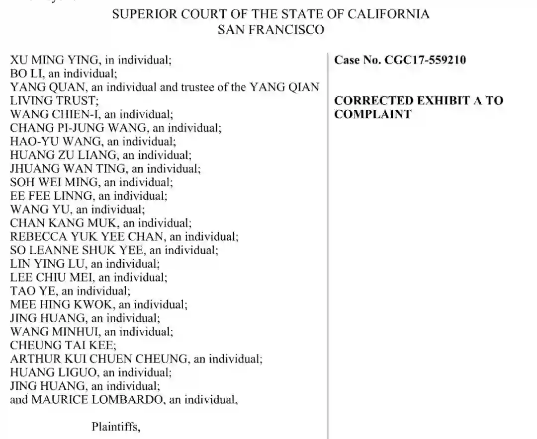 从旧金山高级法院披露的诉讼文件上看,千禧塔的中国业主至少有 20 人。