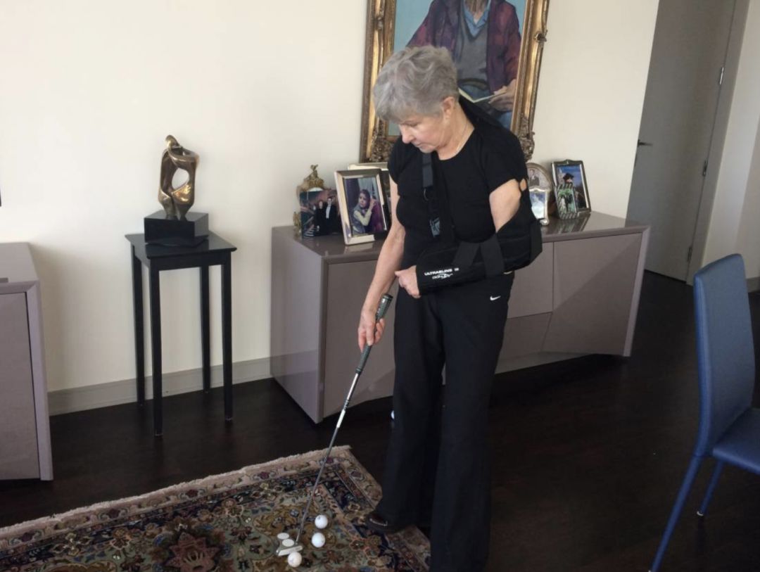 帕米拉独自一人在家中打高尔夫,图源:Stephanie Martin Taylor