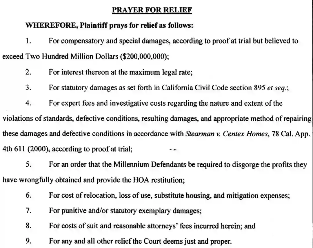 千禧塔业主委员会提出的和解条件,包括2亿美金赔款