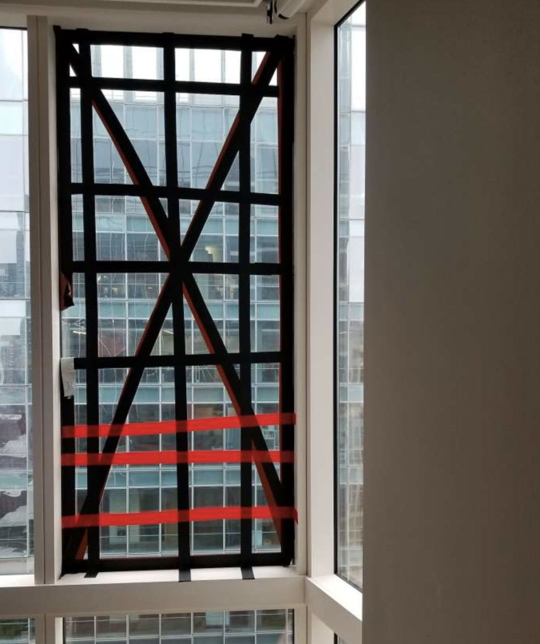 碎裂的窗户已被加固,裂痕清晰可见 图源:旧金山建筑监察部