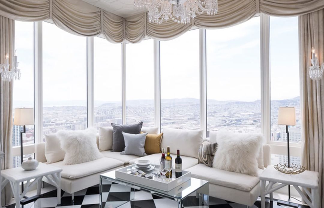 千禧塔顶楼的豪华套房可以 360 度环顾旧金山市区。住客拉开窗帘,著名的金门大桥近在咫尺,整个城市的天际线也能被尽收眼底。这套公寓至今保持着“旧金山市最贵两居室”的记录,在 2015 年卖出了 945 万美元的天价,甚至连物业费也高达 2.3 万美元一年。同年,旧金山市民的平均年收入为 6.3 万美元,拿出三分之一才够在千禧塔交个物业费。