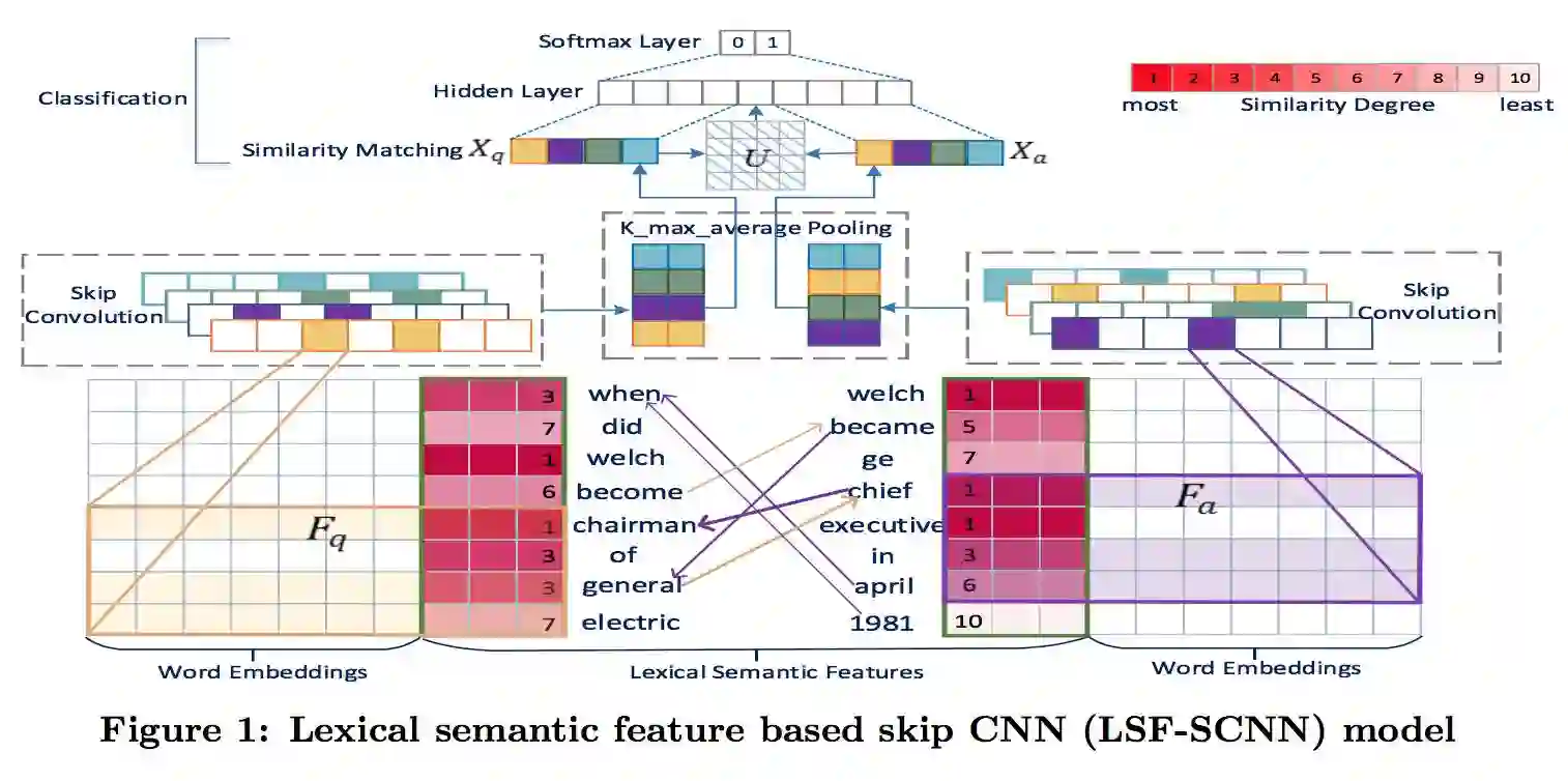 本文主要介绍了LSF-SCNN模型,即基于词汇语义特征的跳跃卷积模型 (Lexical Semantic Feature based Skip Convolution neural network ),基于卷积神经网络模型引入三种优化策略:词汇语义特征 (Lexical Semantic Feature, LSF)、跳跃卷积 (Skip Convolution, SC)和K-Max均值采样 (K-Max Average Pooling, KMA) ,分别在词汇粒度、短语粒度、句子粒度上抽取更加丰富的语义特征,从而更好的在向量空间构建短文本语义表达模型,并在答案选择 (Answer Selection) 问题上进行了实验验证。