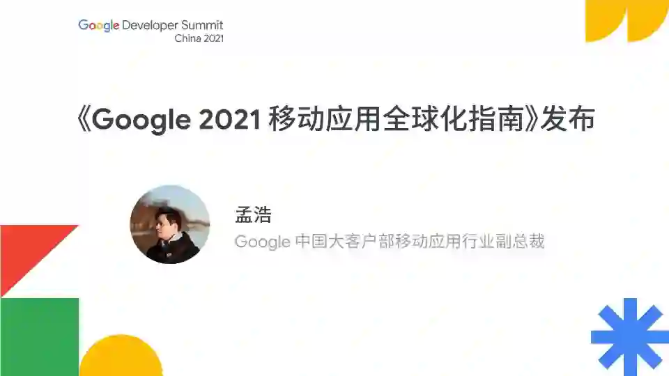 随后,Google 中国大客户部移动应用行业副总裁孟浩对《Google 2021 移动应用全球化指南》进行了发布和深入分享。《Google 2021 移动应用全球化指南》是 Google 携手罗兰贝格与大观资本共同推出的中国移动应用全球化行业报告。本指南旨在提供最新的垂类机会分析,应用运营、增长、商业化的策略,以及丰富的移动应用全球化案例,帮助移动应用走向全球。