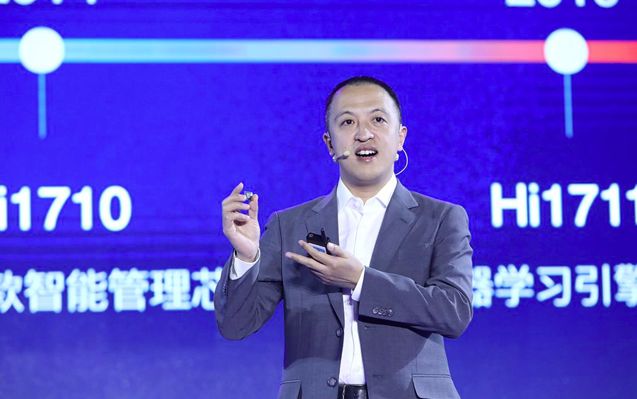 华为智能计算业务部总裁邱隆展示基于 ARM 架构的处理器芯片
