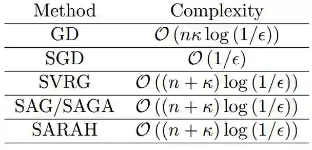 考虑到问题(11),人们发现通过利用目标 F 的结构作为 n 个函数的有限和再加上简单的凸函数项,可以改善 SGD 方法。目前已经研究出几种方法,如 SAG [74],SAGA [22],SDCA [76] 和 SVRG [44]。