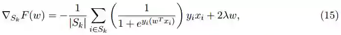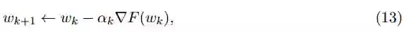 在每一次迭代中,随机梯度法都会计算梯度 F(Wk)的无偏估计 GK。该估计可以以及低的代价计算得到;例如,对于公式(12),某次迭代的随机梯度可被求解为
