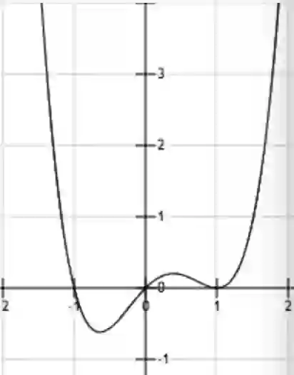 根据梯度下降法的定义,其迭代最终必然会终止于一阶导数(对于多元函数来说则是一阶偏导数)为零的点,即驻点。对于可导函数来说,其极值点一定是驻点,而驻点并不一定是极值点,还可能是鞍点。另一方面,极值点也不一定是最值点。下面举几个简单的例子。