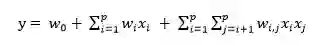 在这里我们认为各个特征之间是相互独立的,而事实上往往有些特征之间是相互关联、相互影响的。因此,就有必要想办法捕捉这些特征之间的相互影响。简单起见,先只捕捉二阶的关系,即特征之间两两之间的相互影响。具体反映到回归公式上,即为