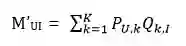 即对于矩阵M(m*n),我们想办法将其分解为P(m*k)、Q(k*n),此时对于原始矩阵中有评分的位置MUI来说,其在分解后矩阵中对应的值就是